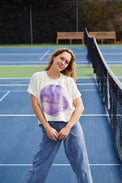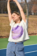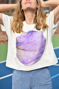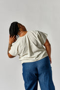 Cut in a simple box shape, the marbled Planet Top is a playful statement piece. The relaxed fit and cropped body highlight the circular panel, which is hand-marbled by our collaborator Zeynep Guvenc in Cary, NC.