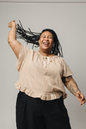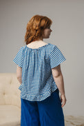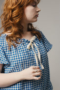 A romantic style with an adjustable neck, the Zoe is your new warm weather go-to. Cut with plenty of volume, the piece gathers delicately around the neck with a cotton grosgrain tie and a subtle bias cut raw edge detail. The slightly curved hem is finished with a soft ruffle.